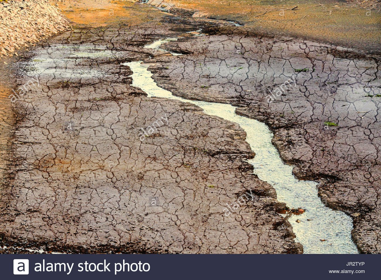 When I think about a dry river bed returning to life, what happens first? Does water flow over the baked soil or does mud appear?