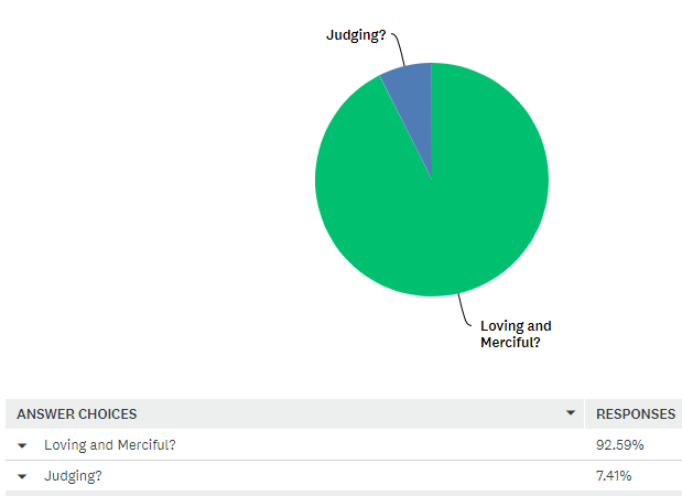 It’s encouraging to see that most of our readers find it easier to imagine God as Loving and Merciful rather than Judging.