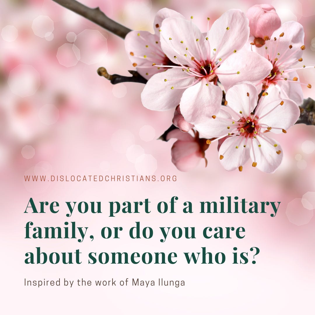 Here’s a link to a previous piece I wrote about Maya Ilunga’s paintings and how they help me think about being an army wife.